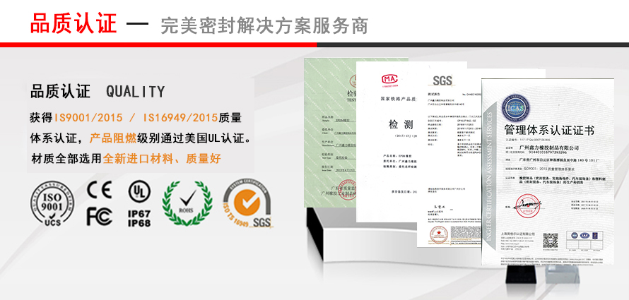 (3)廣州鑫力橡膠采用標(biāo)準(zhǔn)的生產(chǎn)管理及質(zhì)量管理體系,先后通過ISO9001、ISO14001、ISO/TS1694等各種認(rèn)證。